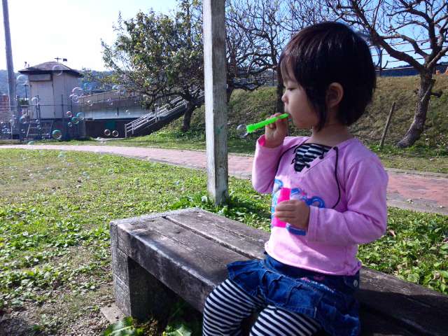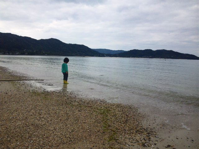 最初は三輪車で遊ばせていましたが飽きてしまい、すぐそばの海に出ちゃいました。