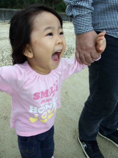 お参りが終わって、チャーさんの希望通り海には行ったけど、オットとわたしでチャーさんの腕を掴み、水に入ろうとするのを引き止め。