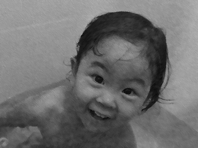 体を洗った後、湯船に少しのお湯をはって水遊びをさせたのですが、全然飽きる気配がありません(呆)