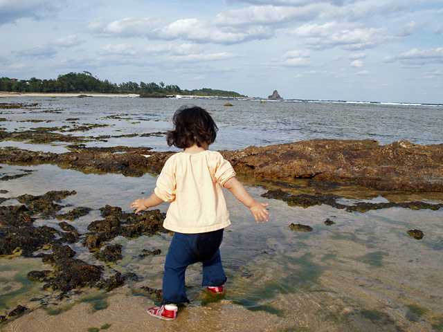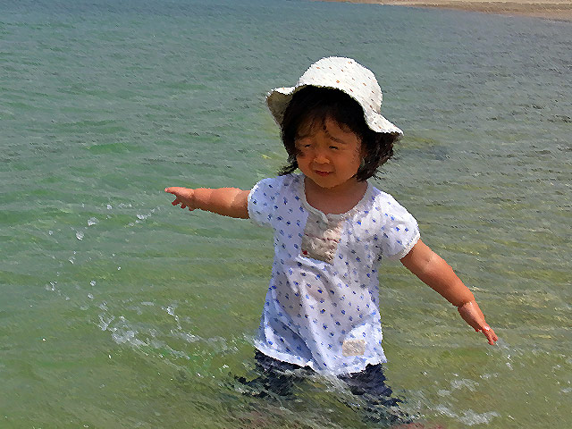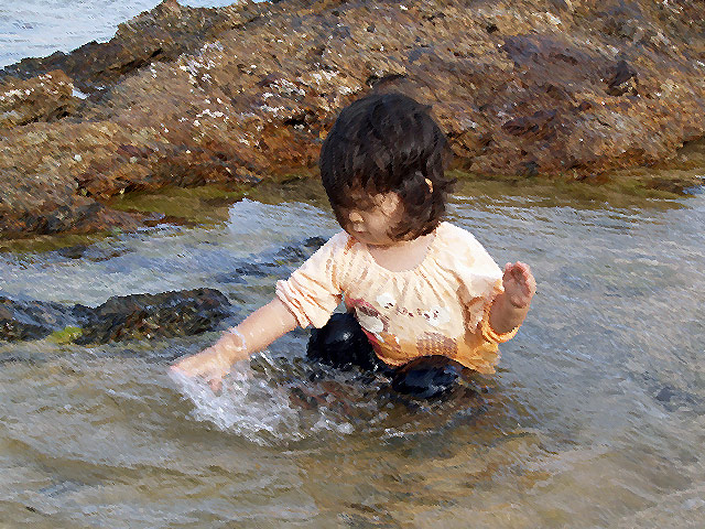 はじめは立ったまま、手で水をパシャパシャしていたのですが、だんだん腰の位置が低くなっていき、
