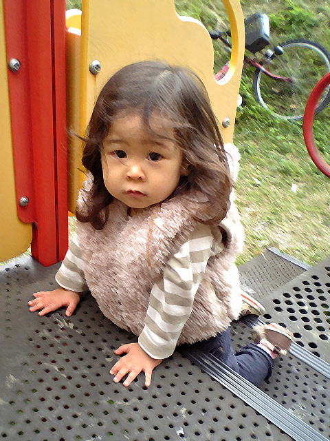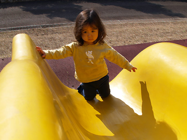 (2枚とも、1/22 義母宅のある建物の敷地内にある遊具にて撮影)
