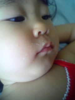 泣き声とともに目が覚めたチャーに寝乳をあげました。
