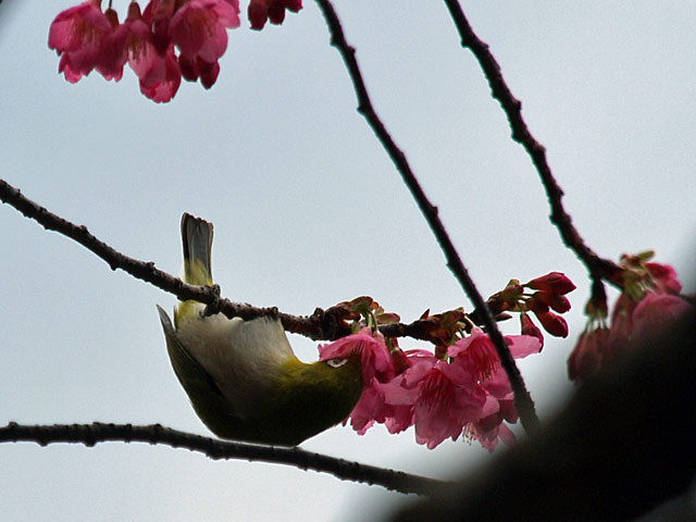 (クリックすると、640*480の画像が表示されます)桜の周りには常にメジロがさえずり、飛び回りながら花の蜜を吸っていてとてもにぎやかです。
