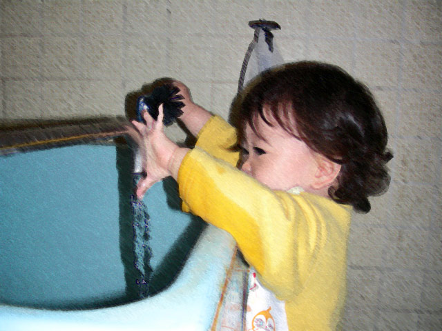 それからというもの、しょっちゅうではありませんが、お風呂のお湯をためるときに、蛇口から出るお湯をさわらせてます。