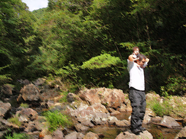 次は、島では有名な滝を見に行ったときの写真。