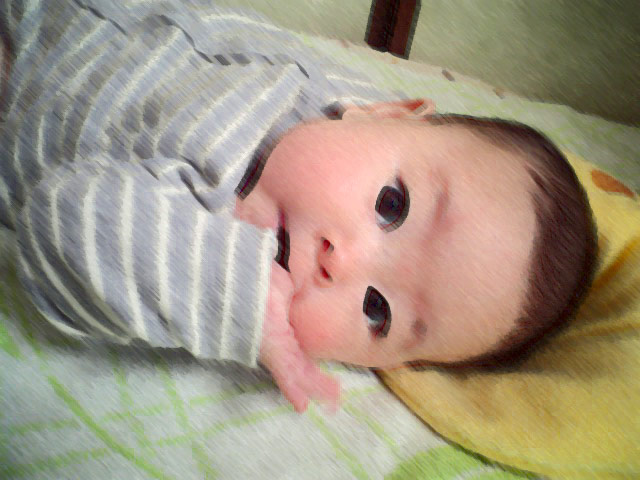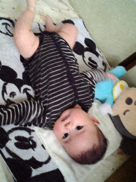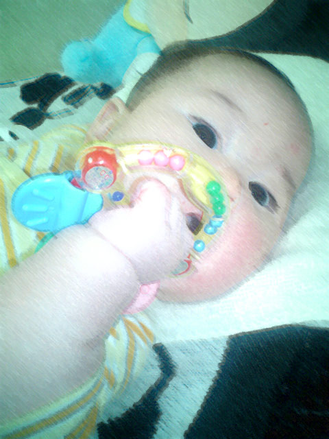 上は、はじめておもちゃを、チャー自ら握ったときのもの。