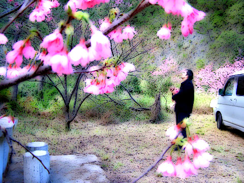 昨日13日義母を誘い、4人で桜の名所へヒカンザクラ