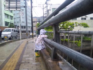 ついさっきまで、橋の上からニシキゴイを見ていました。