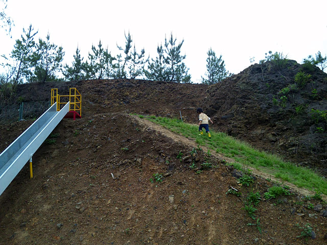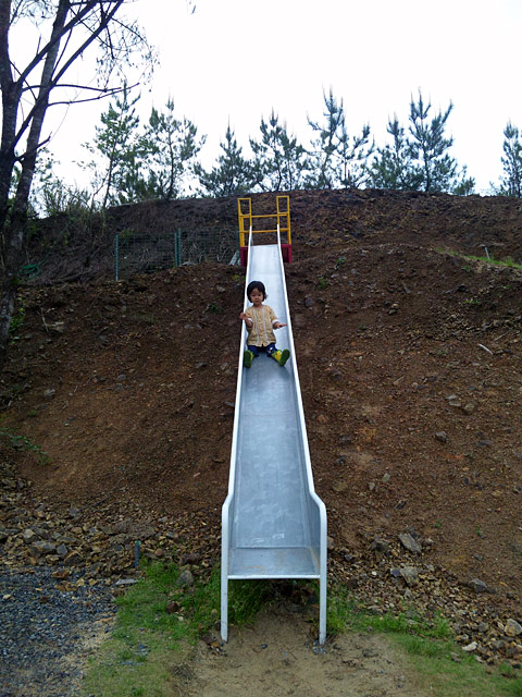 に買い物に行ったですが、敷地内にはなんと、山を削って作ったすべり台があります。
