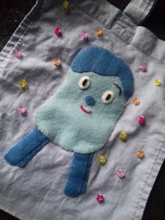 はじめはアイロンプリントのアップリケで、カンタンに済まそうと思っていました。